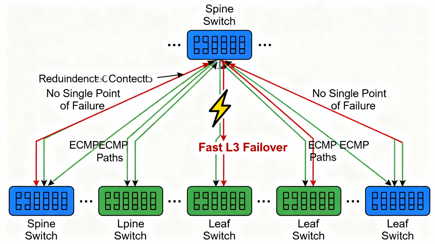 Because the fabric is built around L3 + ECMP, failure detection is fast: